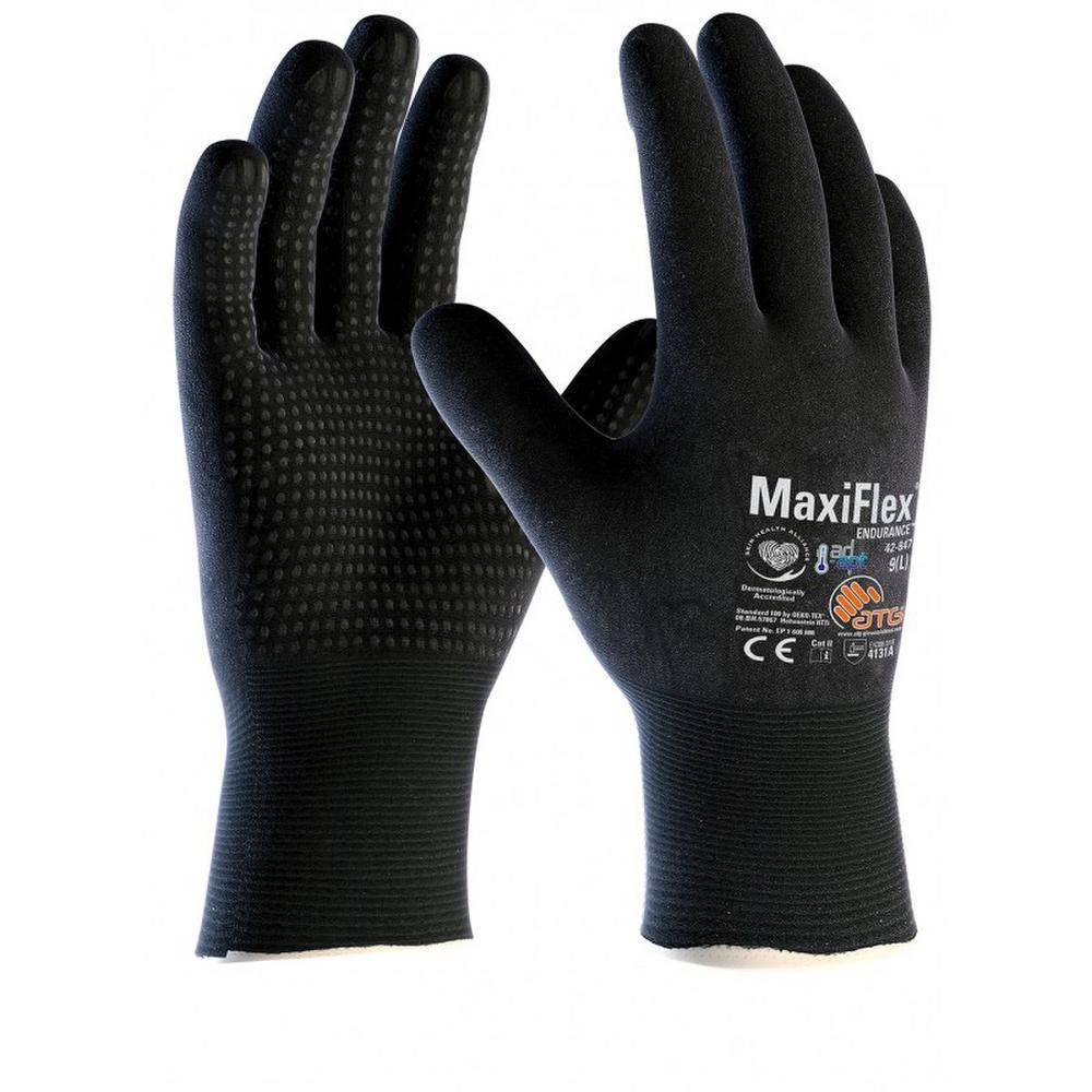Fabriqué en nylon et lycra, il est entièrement enduit de nitrile microporeux, permettant une imperméabilité partielle tout en conservant une grande souplesse. Des picots en nitrile sont ajoutés sur la paume pour renforcer la préhension et limiter les risques de glissement lors de la manutention d’objets lisses. Le gant est également équipé d’un protège-artère pour une sécurité maximale au niveau du poignet.